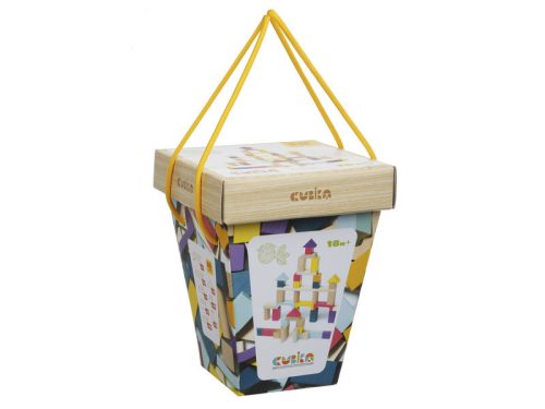 Egy igazán hasznos és szórakoztató alap építőjáték szett 100 darab, különböző formájú és színű fa építőkockával, praktikus csomagolásban. A doboz zárható fedéllel rendelkezik és zsinór füleinek köszönhetően könnyedén vihetjük magunkkal bárhová. Az építőkockák formáinak köszönhetően sokféle módon variálhatók, szinte bármilyen formát és építményt kirakhatnak belőle a gyerekek. A kockák egy része vidám színekben pompázik, így a variációk száma tovább fokozható. Építés közben a gyerekek játékosan ismerkednek meg a geometriai formákkal, azok egymáshoz való viszonyával és szabadon próbálgathatják a statikai határokat is. Az építőkockák egymásra helyezése precíz mozdulatokat kíván, így fejleszti a kézügyességet és a finommotorikát is. Az építmények megtervezés és megalkotása hosszan leköti a gyerekek figyelmét, megdolgoztatja a kreativitást és a képzelőerőt. A kockákkal szinte bárhol és bármikor lehet játszani, erősek és tartósak!