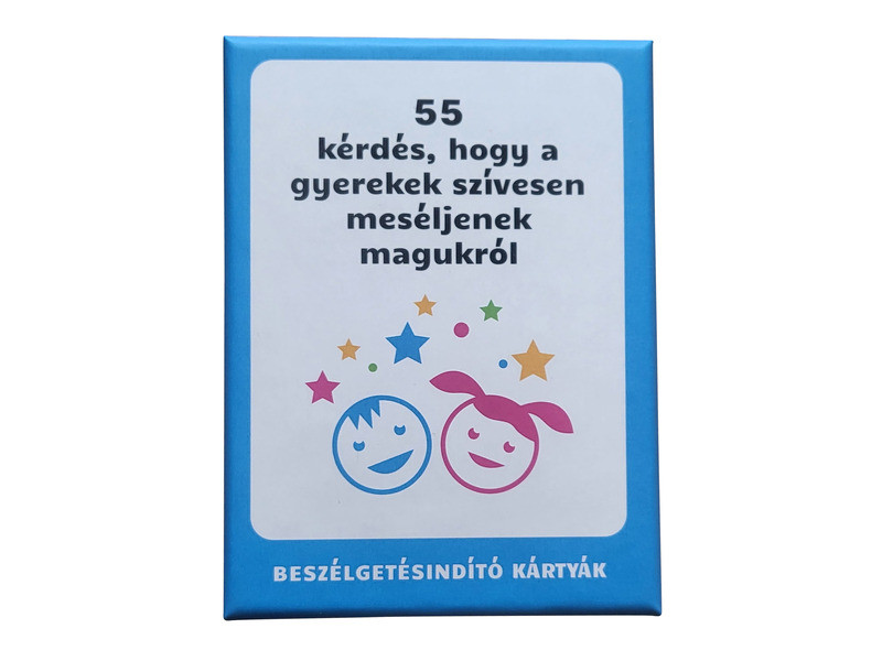 55 kérdés, hogy a gyerekek szívesen beszéljenek magukról Egy interaktív és gondolatébresztő társasjáték, amely célja, hogy segítse a felnőtteket és a gyerekeket a nyitott és élvezetes kommunikációban. A játék 55 kártyát tartalmaz, mindegyik egy-egy érdekes és gyermekbarát kérdéssel, amelyek arra ösztönzik a gyerekeket, hogy megosszák gondolataikat, érzéseiket és élményeiket. A kérdések úgy lettek megalkotva, hogy a gyerekek könnyen és örömmel válaszoljanak rájuk, miközben a felnőttek is betekintést nyerhetnek a gyerekek gondolkodásmódjába és világába. A játék rugalmas, nincs meghatározott játékidő, így alkalmazkodik a játékosok igényeihez és a beszélgetés menetéhez. A kártyák minőségi anyagból készültek, színes ami még inkább felkelti a gyerekek érdeklődését. Ez a társasjáték tökéletes eszköz lehet a családi összejöveteleken, baráti találkozókon vagy akár az iskolai környezetben is, hogy elősegítse a gyerekek közötti és a gyerekek és felnőttek közötti kommunikációt. Ajánlott 3 éves kortól. Tovább olvasom Bezár