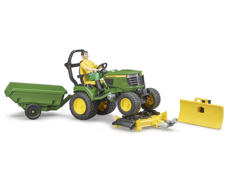 BWORLD John Deere Fűnyíró traktor pótkocsival és kertésszel