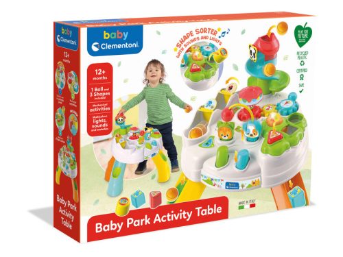 Baby Clementoni Interaktív tanulóasztal Interaktív elektronikus tanulóasztal, amely rengeteg élményt tartogat a gyerekek számára, hisz: a formák területe világít és hangokat ad ki, a fogaskerekek körbe-körbe forognak, a gombok megnyomáskor mozognak. Tartalmaz egy szórakoztató golyópályát labdákkal és csúszdákkal, amely az asztal lábainál végződik. Fejleszti a kézügyességet, a vizuális észlelést és az ok-okozati kapcsolat felismerését.
