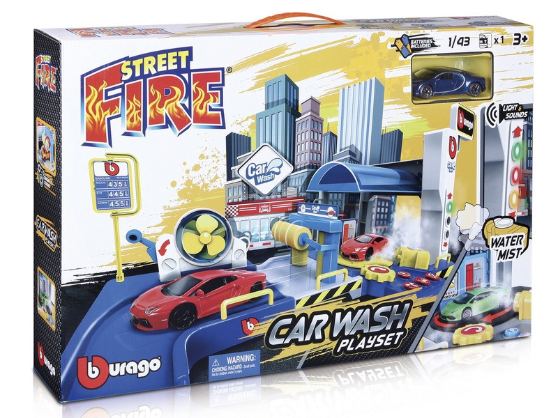 Tisztítsd meg kocsidat! A Bburago autómosó készlet segítségével végre percek alatt lemoshatod az utca porát az 1:43 méretarányú, részletgazdag kialakítású kisautódról. Vidd hát el az üzletbe a sáros járgányodat, és élvezd, ahogy a fényjelzések és géphangok közepette makulátlanná pucolódik kedvenc járműved! A Bburago autómosó 1:43-es kisautóval 3 darab AA típusú ceruzaelemmel működik (tartozék). A termék csomagolásának méretei: 56 x 35 x 9 cm. A játékot 3 éves kortól ajánljuk. Tovább olvasom Bezár