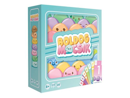 Boldog mocsik, kártya Játékosok száma : 2-6 játékos Korosztály : 8 éves kortól ajánlott Játékidő : kb. 20-25 perc Édes, ragacsos kis rizsliszt-golyócskák – ezek a mocsik! Ragadnak egymáshoz is – a mocsikártyákat ezért csak párosával lehet kijátszani, és annyira ragadnak, hogy csak két szomszédos lapot játszhatsz ki a kezedből! A játékot az nyeri, aki először szabadul meg ragadós lapjaitól. A Boldog mocsik könnyed kártyajáték, amelyben a játékosok csak akkor tehetnek le két kártyát a kezükből, ha az abból alkotott számpár nagyobb az asztal közepén lévőnél. Vagy kisebb – attól függ, az értékkártya épp + vagy - jeles oldalát mutatja. Ám ha összejön két azonos értékű lap, mondjuk két darab 2-es, akkor azt bármikor letehetik! Ezek a párosok a „boldog mocsik”. Érdemes tehát úgy kiválasztani a kézben lévő kártyák közül kettőt, hogy a kézben maradó, így egymás mellé kerülő kártyák újabb jó kombinációt alkossanak. A feladatot az egyes kártyák kijátszásakor aktivált különleges hatások könnyíthetik meg. Válassz okosan kártyapárt a kezedből, alkoss új párokat a húzott kártyákkal – szabadulj meg a kis színes mocsiktól! Tovább olvasom Bezár