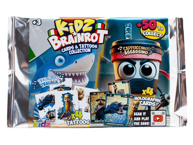 Brainrot holografikus kártyák, tetoválások vegyesen