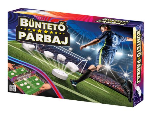 Társasjáték - Büntetőpárbaj Játékosok száma: 2 játékos, Korosztály: 6 éves kortól ajánlott. A Büntetőpárbaj - focis társasjátékban a játékosok rafinált és gyors döntéshozatalán múlik, hogy kiből lesz a gólkirály! A "Büntetőpárbaj" egy pörgős társasjáték, amely garantáltan szórakoztató és izgalmas pillanatokat kínál a focirajongó játékosoknak. A játék központi eleme a versengés és a kihívás. A játékosoknak a saját térfelükre helyezett labdát kell a kezdőrúgás után az ellenfél kapujába juttatni! Ki lesz az ügyesebb és gyorsabb focista? Ez a társasjáték kiváló választás baráti összejövetelekre, családi játéknapokra vagy akár parti játékokhoz is. A Büntetőpárbaj felpörgeti a hangulatot és garantáltan mosolyt csal az arcokra. Kihívásokkal és vicces helyzetekkel teli játék, amely minden focirajongó játékost magával ragad. Engedd szabadjára a versenyszellemet a Büntetőpárbaj segítségével, és élvezd az izgalmas játékmenetet a barátaiddal és családoddal!