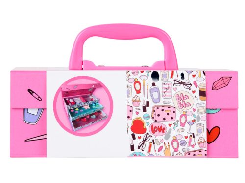 Create it! Sminkszett, 3 emeletes doboz A Create it! Sminkszett, 3 emeletes doboz igazi különlegesség azoknak, akik szeretik a divatos megjelenést és a kreatív kísérletezést. A szett három szinten kínál színes sminkeket és kiegészítőket, így mindig akad új árnyalat és stílus, amit kipróbálhatsz. Praktikus, emeletes doboza átlátható tárolást biztosít, így a sminkek mindig rendezettek maradnak. A játékos formatervezés és a sokféle szín lehetőséget ad a fantáziadús alkotásra, miközben szórakoztató élményt nyújt. Ideális ajándék tinédzsereknek és minden sminkkedvelőnek.