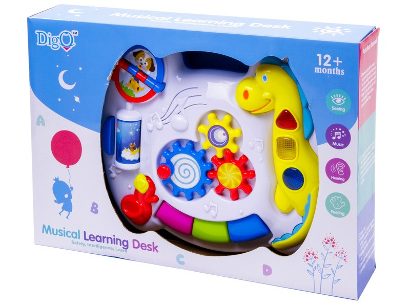 Rengeteg meglepetés és felfedezni való vár a készségfejlesztő asztalon! A Dínós bébi készségfejlesztő asztal vidám dallamokkal, változatos színekkel kelti fel a gyerek érdeklődését. Az asztal játékait, gombjait nyomogatva mindenhol színes fények gyulladnak ki, és különböző zenék szólnak, amik segítenek a pici megfigyelő képességének a fejlődésében. A lapozós játék az állatokat mutatja be, míg a hengert gombnyomással lehet forgatni, hogy más képet láthasson a pici. A középen található tekerős játék pedig mókás kattogó hangot ad ki magából. A Dínós bébi készségfejlesztő asztal fejleszti a gyerek kézügyességét, segít a mozgáskoordinációban is. A játékot a kiságyra is fel lehet fogatni, de a lábakat felszerelve ülve is lehet vele játszani. A Dínós bébi készségfejlesztő asztal 3 db AA ceruzaelemmel működik, a csomagolás az elemeket nem tartalmazza. Asztallap méretei: 38 x 25 cm. Tovább olvasom Bezár