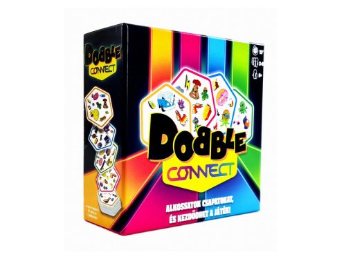 Dobd le egy vonalba! A Dobble Connect a nemzetközi sikerjáték és az amőba különleges találkozása. A játékosok egyénileg vagy csapatban igyekeznek sorokat kialakítani a jól ismert Dobble-szabályok szerint. A koncentrációt és a reflexeket fejlesztő társasjáték. A lapokon található figurák közül bármelyik két lapon csak egy kép azonos. Legyél a leggyorsabb! Találd meg az azonos figurákat a kártyákon, mielőtt a többiek megelőznek! Kis méretének köszönhetően pedig ideális utazójáték lehet, magunkkal vihetjük bárhová, például kirándulásra, strandra. Játékosok száma: 2-8 fő.
