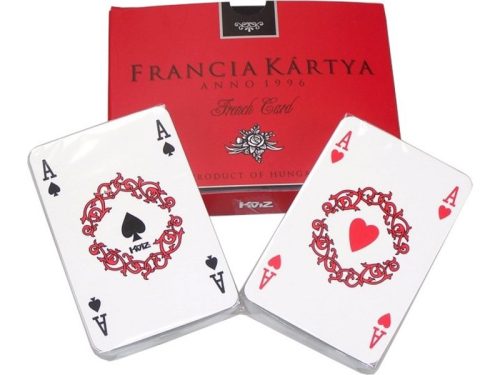 Dobozos 2 x 55 lapos francia kártya Két pakli standard, klasszikus römi kártya 2 x 55 lapos kiadásban. A kártyákkal bridzs, römi, kanaszta és póker játékokat is lehet játszani - illetve számos más, francia kártyával játszható játékot. A kártyák minőségi papírból készültek, festésük szép. Napjaink egyik legnépszerűbb játékeszköze a Francia kártya. Ez a kártya az unalmas, hosszú őszi és téli esték kedvelt elfoglaltsága lehet.