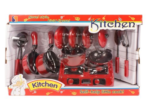 Süsd és főzd meg a legjobb ételeket a piros edényekben! A 13 darabos edénykészlet tűzhellyel csomagban egy két gázrózsás tűzhelyet találsz, amin szinte bármilyen ételt el tudsz készíteni. A csomagban serpenyő, lábosok is megtalálhatók, megfelelő méretű fedőkkel, lapátokkal és szedőeszközökkel is. A 13 darabos edénykészlet tűzhellyel bármilyen játékkonyhával is együtt használható. Csomagolás méretei: 42 x 10 x 26 cm. Tovább olvasom Bezár