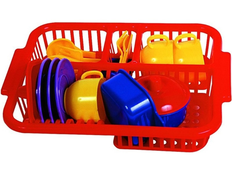 Mosogasd el a színes edényeket, és utána tedd őket a szárítóba! Az Edényszárító 17 darabos készlet egy műanyag szárító kosarat és rengeteg konyhai eszközt rejt magában. Az edényeket játékkonyhádon is tudod használni, de akár meg is lepheted barátaid egy teadélutánnal vagy egy finom szelet süteménnyel. A csomagban három tányért, két lábost, egy fedőt, három csészét, egy evőeszköz készletet és konyhai eszközöket találsz. Az Edényszárító 17 darabos készlet méretei: 31 x 6 x 24 cm. Tovább olvasom Bezár