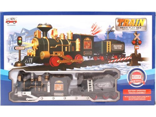 Rakd össze a síneket, induljon a nosztalgia vonat! Az Elemes nosztalgia vonatkészlet egy gőzmozdonyt és egy vonatkocsit tartalmaz, amit egy kör alakú pályán halad folyamatosan. Kapcsold össze a kocsikat, állítsd össze a pályát, díszítsd sorompóval és jelzőkkel! Ezután már csak fel kell tenned a vonatot a pályára és figyelned, ahogy száguld! A mozdony első lámpája világít, a mozdony fütyül és sistergő hangokat ad ki magából. A Elemes nosztalgia vonatkészlet 2 db AA ceruzaelemmel működik, a csomagolás az elemeket nem tartalmazza. Mozdony méretei: 15 x 5 x 8 cm. Csomagolás méretei: 40 x 6 x 24 cm. Tovább olvasom Bezár
