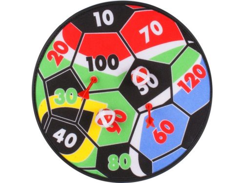 Dobjatok célba a focilabda mintás darts táblán! A tábla egy kampóval vagy szöggel szinte bárhova felakasztható, és gyakorolni tudjátok vele a célbadobás tudományát! A mezők különböző pontokat érnek, a játék lényege, hogy minél több pontot elérjetek adott távolságról. A készletben 2 db tépőzáras labda és 2 db tépőzáras nyíl található, amik megtapadnak a tábla felületén. A tábla átmérője: 36 cm. Tovább olvasom Bezár