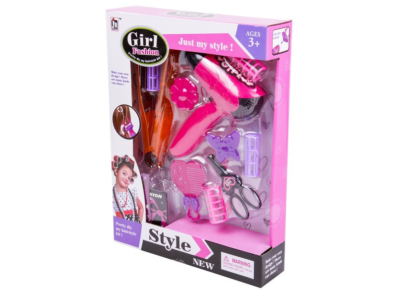 Készítsd el hercegnő frizurádat a Szépségszett-ben található fodrász kellékekkel! Használd a hajcsavarót a göndör tincsekért, és a hajvasalót, ha szögegyenes hajzuhatagra vágysz. Vágd le ollóval a töredezett hajvégeket, fésüld ki a gubancokat a rózsaszín fésűvel, majd koronázd meg az egész folyamatot a pillangós és virágos hajcsatokkal! A Szépségszett terméket 3 éven aluliaknak nem ajánljuk. A játékhoz 2 db 1,5V ceruzaelem szükséges. Az elemeket a csomagolás nem tartalmazza. Tovább olvasom Bezár