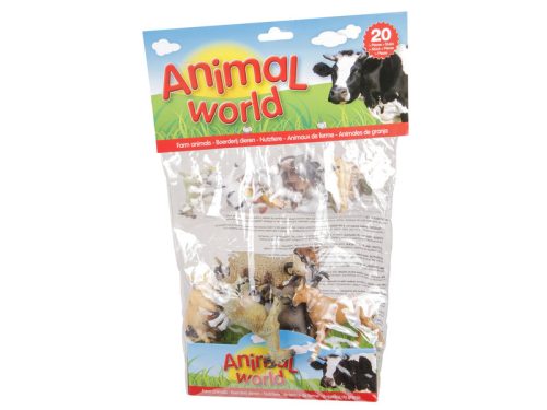 Rendezd be a farmot műanyag állatfigurákkal! A Háziállat 20 darabos készlet baromfi, tehén, szamár, malac és mindenféle állat műanyag figuráját tartalmazza, akik a gazdaságban élnek. Az állatok szépen kidolgozottak, és bármilyen állatos, farmos játékkal együtt használhatók. A Háziállat 20 darabos készlet kétféle méretű állatot tartalmaz: a kisebb állatok : kb. 5 cm, a nagyobb állatok : kb. 9 cm nagyságúak.