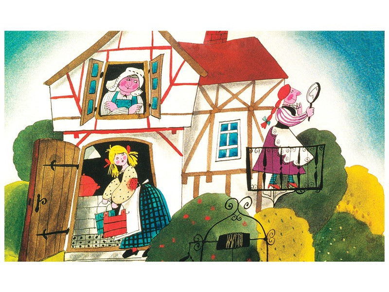 Tanulságos Grimm mese a dolgosságról, lustaságról és a jutalmazásról. Az özvegyasszony mostohalánya folyton dolgozott, reggeltől estig, míg az édes lánya egész nap csak tollászkodott, lustálkodott. A szorgalmas lányt Holle anyó megjutalmazza, míg a lustának élete végéig rútul kell élnie. Írta: Grimm testvérek. Rajzolta: Zsoldos Vera. A diafilm kódja: N0057