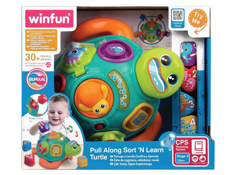Húzható formaegyeztetős teknős Ismerkedj meg a tanulás és játék tökéletes kombinációjával a húzható formaegyeztetős teknőssel! Ez a kedves kis teknős nemcsak húzható, hanem különböző formákkal is rendelkezik, amelyek segítik a kicsiket a forma- és színfelismerésben. A gyerekek fejleszthetik kézügyességüket és logikai készségeiket, miközben jól szórakoznak. Tökéletes választás minden kisgyermek számára, aki szeretne tanulni és játszani egyszerre, ideális társ a felfedezéshez és a készségfejlesztéshez.
