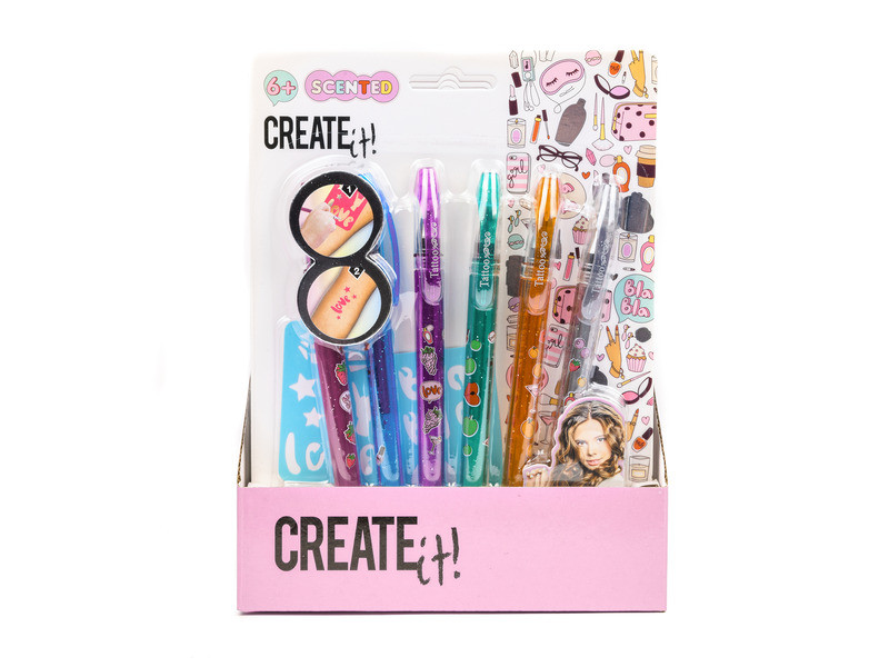 Rajzolj magadra illatos tetkókat, sablon segítségével! Az Illatos tetováló toll 6 darabos készlet csillámmal kevert festékkel töltött filctollakat tartalmaz, rózsaszín, kék, lila, zöld, narancssárga és ezüst színekben. A tollak illatosak, illeszd a sablont a karodra, majd kezdd el megrajzolni, satírozni a mintákat, így feliratot, csillagokat, vagy egyéb mintákat tudsz majd a karodra, lábadra rajzolni. Az Illatos tetováló filctoll 6 darabos készlet egészségre ártalmas anyagot nem tartalmaz, az elkészült csillámtetkók könnyen lemoshatók. Tollak hossza: 13 cm. Tovább olvasom Bezár