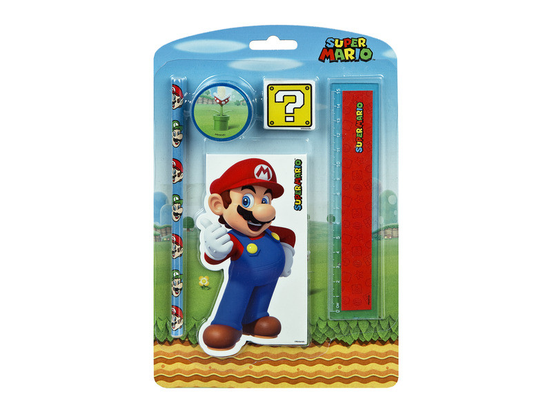 Super Mario a Nintendo kabalája. A népszerű számítógépes játék figura most a mozivásznon is meghódítja a szíveket! Az új animációs filmben a Super Mario Bros világában játszódó fergeteges kalandban vehetsz részt. Super Mario mintás írószerekkel feldobhatod az iskolai felszerelésedet. Az írószer szett tartalma: Super Mario mintás kisméretű puhafedeles notesz, 1 db Super Mario és Luigi mintás grafitceruza, 15 cm-es Super Mario feliratú piros vonalzó, valamint 1 db radír és hegyező. Tovább olvasom Bezár