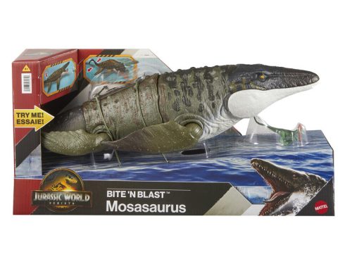 Jurassic World SAGA Mosasaurus Merülj el a mélytengeri kalandok világában a Jurassic World Saga Mosasaurus figurával! Ez a monumentális játék a népszerű filmsorozat egyik legfélelmetesebb vízi dinoszauruszát kelti életre, lenyűgöző részletességgel és mozgatható elemekkel.