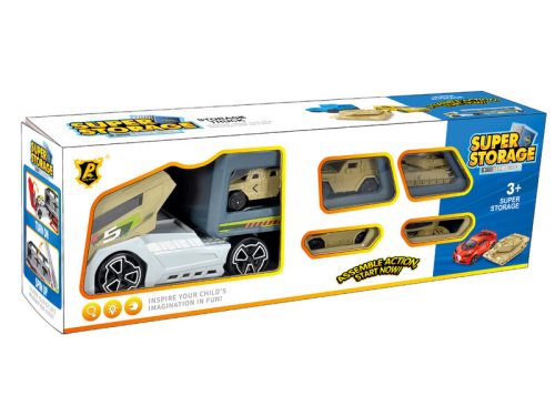 Alakítsd meg saját katonai osztagodat! A Katonai autószállító 5 db autóval készletben mindent megtalálsz, amire csak szükséged lehet. A teherautón 5 jármű érkezik, tankok, egy repülő és két darab terepjáró. A jellegzetes krém színvilág tökéletesen megidézi a harci járművek kinézetét. Állítsd fel a teherautó rámpáját és gurítsd le rajta autóidat! Az 5 darabból álló készültségeddel azonnal bele tudsz lendülni a rád váró kihívásokba. A teherautóban szállíthatod is őket, így akár praktikus tárolóként is funkcionálhat szállító járműved. Az izgalmas repülő jármű könnyedén feltérképezheti a rád váró terepet, így neked csak a hadi tervet kell megalkotnod. A gurítható járművek pedig könnyedén mozgathatóak, így az önfeledt játéknak semmi sem szabhat határt. A készletben megtalálod a teherautót és az 5 darab harci járművet. A játékot 3 éves kortól ajánljuk. Tovább olvasom Bezár