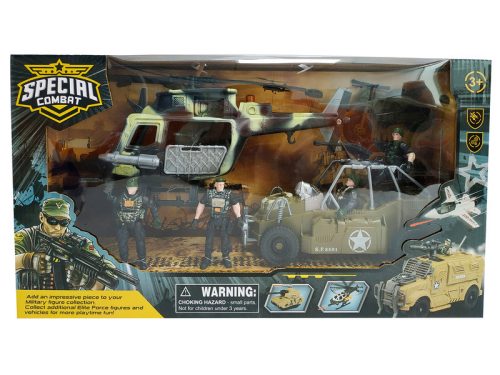 Fegyverezd fel saját hadsereged a katonai jármű és figura készlettel! A csomagban két katonát és rengeteg kiegészítőt találsz, ami egy csatához elengedhetetlen. A helikopterrel az égből tudsz támadni, a ponyvás teherautón a legfontosabb eszközöket tudod elszállítani. A hálóval el tudod fogni az ellenséget, a Katonai jármű és figura készlet tereptárgyakat és egy sátrat is tartalmaz. Játszd el a legnagyobb csatákat a járgányokkal és a mozgatható végtagú katonákkal! Csomagolás méretei: 42 x 15 x 42 cm.