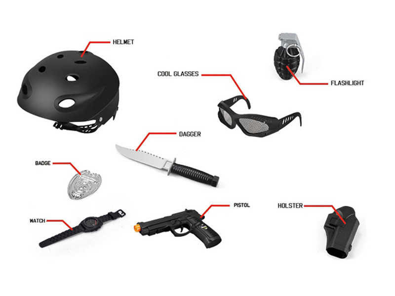 Kommandós fegyverszett Legyél Te is kommandós! A műanyag játékfegyverekkel sarokba szoríthatod a bűnözőket! Minden kis srác szereti az akció játékokat, így ez nekik tökéletes választás lesz. Beöltözhetnek a Barátaikkal, s a szabadban már mehet is a csata. A szett tartalma: sisak, gránát, jelvény, pisztoly, pisztolytáska, kés, szemüveg, óra. 3 éves kortól ajánlott Tovább olvasom Bezár