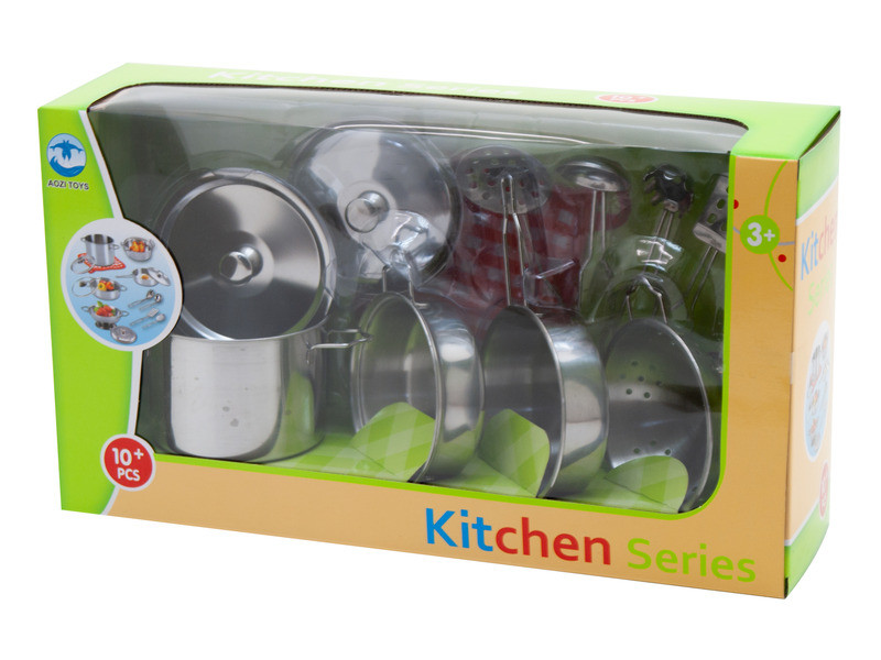 Tanuld meg a főzés alapjait a Konyhai fém edénykészlettel! A több,mint 10 darabos csomagban mindent megtalálsz, ami a főzéshez szükséges: lábosokat, serpenyőket, fedőket, egy tésztaszűrőt és lapátokat is. Az edények rozsdamentes fémből készültek, együtt tudod használni őket minden konyhával és konyhai játékkal is. A forró edényeket a csomagban található ronggyal tudod megfogni. Csomagolás méretei: 37 x 11 x 22 cm. Tovább olvasom Bezár