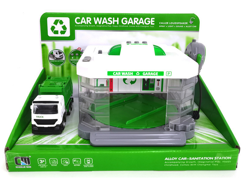 Kukás garázs és autómosó, fém autóval Fedezd fel a játékváros izgalmas oldalát a Kukás garázs és autómosó, fém autóval készlettel! Ez a különleges játék egyszerre kínál szórakozást és tanulási lehetőséget, miközben a gyerekek megismerhetik a hulladékgyűjtés és az autóápolás világát. A szett tartalmaz egy garázst, amely kukásautók számára készült, egy működő autómosót, és egy strapabíró, részletgazdag fém járművet. A játék serkenti a fantáziát, segíti a szerepjátékot, valamint fejleszti a kézügyességet és a problémamegoldó készséget.