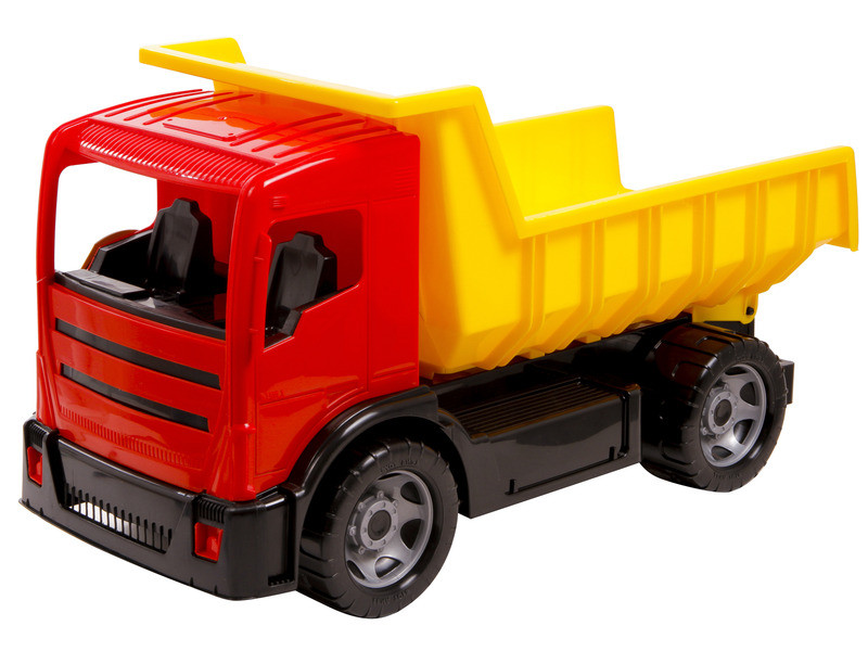 LENA: Műanyag dömper - 60 cm Szállíts nagy és nehéz terheket a 60 cm-es műanyag dömperrel! A dömper nagyon erős anyagból készült, nagy teherbírású. A dömper platója egy retesszel rögzíthető, akár bele is ülhetsz, nem fog alattad összetörni, ráadásul a platót billentve könnyen le tudod róla rakodni az árut! A dömper 6 mm vastag fém tengelyekkel van felszerelve. Méretek: 60 x 26 x 35 cm.
