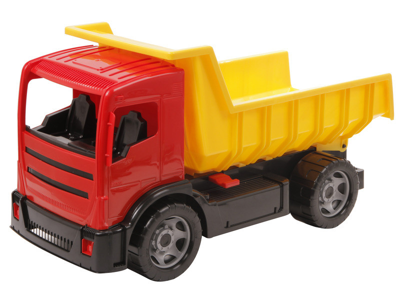 Szállíts nagy és nehéz terheket a 62 cm-es műanyag dömperrel! A dömper nagyon erős műanyagból készült, nagy teherbírású, akár 150 kg-os rakományt is képes elszállítani. A dömper platója egy retesszel rögzíthető, akár bele is ülhetsz, nem fog alattad összetörni, ráadásul a platót billentve könnyen le tudod róla rakodni az árut! A dömper 6 mm vastag fém tengelyekkel van felszerelve. A 62 cm-es műanyag dömper piros vezetőfülkével kapható. Csomagolás méretei: 70 x 29 x 36 cm.