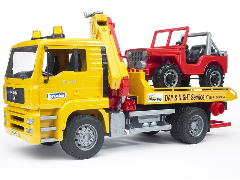 MAN TGA autómentő teherautó terepjáróval A MAN TGA autómentő nem hiányozhat egyetlen nagyobb járműflottából sem. A meghibásodott vagy sérült autókat minél gyorsabban el kell szállítani az utakról. A részletesen kidolgozott modellhez egy szállítható Jeep is tartozik. A felrakodást a kifordítható daru és a kitámasztó lábak, a biztonságos szállítást a rögzítő ékek segítik. A fülke üvegezése tartós és kristálytiszta polikarbonát, a motorháztető kinyitható a motor ellenőrzéséhez. A Jeep kerekei kormányozhatók, a motorháztető kinyitható a motor ellenőrzéséhez, a szélvédő lehajtható. Tulajdonságok: Kitolható és forgatható daru Kitámasztó lábak Emelő gerenda, kerékakasztó lánccal Üvegezett vezetőfülke Rögzítő ékek Kinyitható motorháztető Kormányozható Jeep Mintás gumiabroncsok (a termék szabadban is használható) Minőségi és részletes kidolgozás Németországban gyártva Paraméterek Méretarány 1:16 Anyag ABS műanyag Ajánlott életkor 4 éves kortól Méretek 49,5 x 18,5 x 25,5 cm Gyártó / Szállító Bruder Figyelmeztetés! Csak 36 hónaposnál idősebb gyermekek számára alkalmas. Az apró részek fulladást okozhatnak! Tovább olvasom Bezár