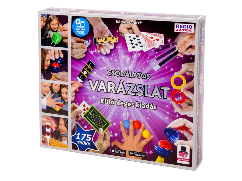 Kápráztasd el barátaidat fantasztikus bűvészmutatványokkal! A Magic Show bűvész doboz - 175 trükkel játékkészletben olyan trükköket tanulhatsz meg, mint pl. hogyan olvass a közönség egy tagjának gondolataiban, hogyan tűntess el tárgyakat. Köteles trükköket, golyós mutatványokat is bemutathatsz, ráadásul még egy nyuszit is oda tudsz bűvölni egy néző kezébe. Miközben játszol a Csiribá Magic Show bűvészdoboz - 175 trükkel készlettel, igazi bűvésszé válhatsz! A Magic Show bűvészdoboz - 175 trükkel tartalma: kockaalagút, karika és rugó, varázsgolyók, varázsnyulak, varázstartályok, kártyatartó, trükk-kártyák, varázsevező, Ellis-gyűrűk, bűvös pénzérmék, varázsállvány, varázspálca. A Magic Show bűvészdoboz - 175 trükkel csomagolási méretei: 36 x 6 x 31 cm. Tovább olvasom Bezár