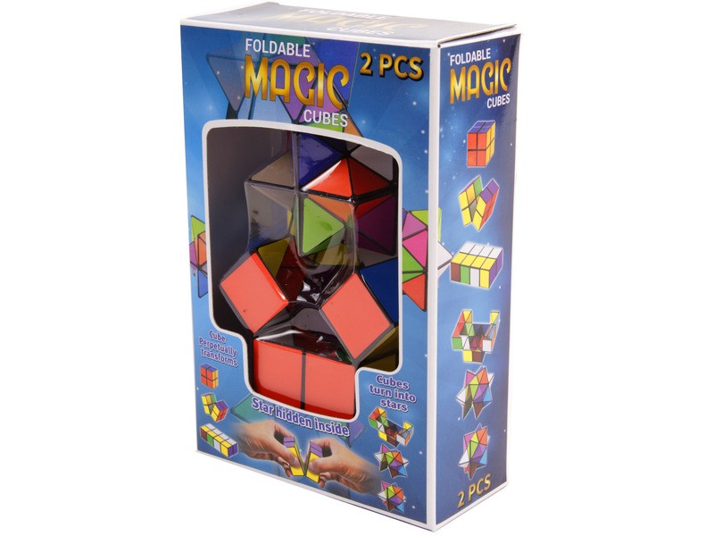 Mágikus kocka 2 darabos készlet Hajtogasd össze a bűvös kockát, hogy megtaláld a csillagot! A Mágikus kocka 2 darabos készletben egy kinyitható, hajtogatható kockát, valamint egy szintén hajtogatható csillagot találsz, amikből rengeteg térbeli alakot tudsz varázsolni. A kockát csillaggá, a csillagot kockává lehet alakítani, ehhez logikára és némi kézügyességre is szükséged lesz, a csillag pont elfér a kockában. A hatszínű kockákból akár 12 színűt is tudsz készíteni, a játék nagy mértékben fejleszti a gondolkodást. A Mágikus kocka 2 darabos készlet csomagolási méretei: 13 x 6 x 19 cm, a kockák élhosszúsága: 5,5 cm.