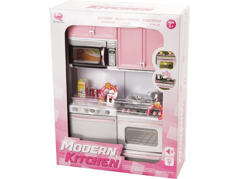 Mini konyha Főzz és süss finom ételeket a modern mini konyhában! A Konyhai eszközkészlet mosogatógéppel egy ezüst és rózsaszín alapszínű bútorkészlet, sütővel, mosogatóval, kenyérpirítóval és mikrohullámú sütővel. A csomagban edényeket, konyhaszekrényt is találsz, a sütő és a mosogatógép ajtaja nyitható. A konyhai eszközök világítanak és főzést imitáló hangot is adnak ki magukból. A játék 2 darab AAA ceruzaelemmel és 3 darab LR44 gombelemmel működik, a csomagolás az elemeket tartalmazza. Méretek: 27 x 10 x 35 cm. Tovább olvasom Bezár