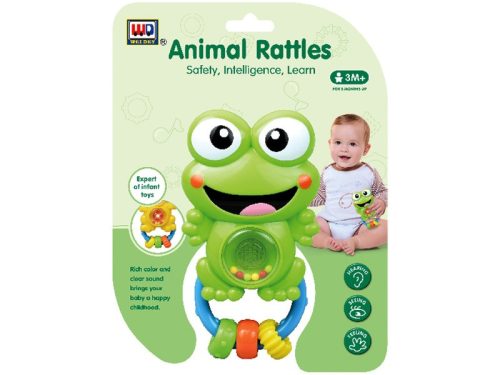 Pici, műanyag csörgő vigyorgó béka figurával! A Műanyag békás csörgő egy zörgő golyókkal töltött kis béka, akit fel lehet akasztani a babaágyra, babakocsira is. Ha a pici megrázza a békát, akkor az vidám, zörgő hangot ad ki magából. A műanyag békás csörgő játék közben világít, pocakja piros fényt ad ki magából. A játék 4 db LR44 gombelemmel működik, a csomagolás az elemeket nem tartalmazza. Méretek: 8 x 14 x 3 cm. Tovább olvasom Bezár