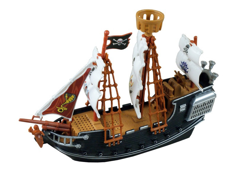 Irány a tenger a kalózokkal, rabold végig az összes kikötőt! A kalózhajó műanyagból készült a fiatal kalózok számára! A hajó orrát egy szobor díszíti, a vitorlákon félelmetes minták ijesztgetik a békés hajósokat. Forgasd el a hajó kormányát, ha szeretnél irányt változtatni, az ágyúkkal bármilyen erős hadihajót el tudsz süllyeszteni. Csatlakozz a kincskereső kalózokhoz, és illeszd be a hajót más kalóz készletekbe is! Hajó méretei: 25 x 8 x 19 cm. Tovább olvasom Bezár