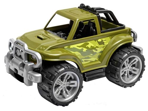 Terepmintás nagy kerekű terepjáró, katonáknak! A zöld Műanyag katonai terepjáró a fegyveres erők négykerék meghajtású járműveit mintázza. Az autó erős műanyagból készült, fém tengelyekkel és széles kerekekkel van felszerelve, hogy még az erdős utakon is át tudjon gurulni. A terepjárót gallytörő rácsok védik, a sofőrülésre katona akciófigurád be tudod ültetni, a fegyvereket a platón tudod szállítani. A Műanyag katonai terepjáró méretei: 35 x 23 x 20 cm. Tovább olvasom Bezár