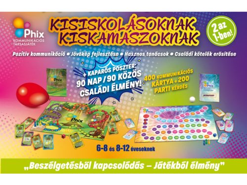 PHIX kommunikációs társasjáték – Beszélgetésből kapcsolódás, játékból élmény A PHIX egy különleges kommunikációs társasjáték, amely játékos formában segíti a gyermekek érzelmi fejlődését, önkifejezését és önbizalmának erősítését. Pszichológusok és fejlesztőpedagógusok közreműködésével készült, hogy valódi beszélgetések és közös élmények révén erősítse a családi kapcsolatokat. A több mint 400 kommunikációs kártya, a játékos kérdések és feladatok, valamint a 90 napos kaparós családi program plakát minden alkalommal új élményt kínál. A TSMT mozgásos feladatok játékosan fejlesztik a finommotorikát, a koordinációt és a testtudatot is. A két korosztály számára készült kártyacsomag lehetővé teszi, hogy a gyerekek együtt játsszanak, tanuljanak egymástól, és közben fejlődjön kommunikációjuk és érzelmi intelligenciájuk. A PHIX nem versenyről szól, hanem a közös nevetésről, figyelemről és az egymással töltött minőségi időről. Tovább olvasom Bezár