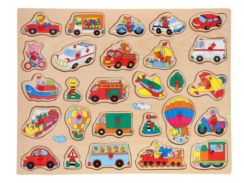 Óriás fa kirakós, 2 féle Jármű, és farm Kérjük, hogy a megjegyzésben tüntesd fel, melyik színt/változatot kéred. Egyes változataink a készlet erejéig elérhetőek. Minőségi fa alapanyagból készült. Minden képet egy praktikus fogantyúval lehet kivenni, illetve visszahelyezni, ami a kis kezek motorikus fejlődése érdekében nagyon hasznos. Fejlődik a gyermek forma- és képfelismerése is. Mérete: 35 x 45 x 3 cm 3 éves kortól ajánlott Tovább olvasom Bezár