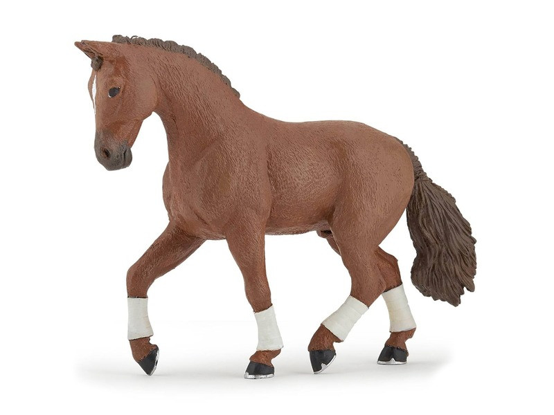 Különleges, barna színű lófigura, rövid sörénnyel! A Papo Alezan hannoveri ló 51556 egy barna színű, sötétbarna sörényű és farkú paripa figura, fehér bokavédőkkel. A ló kézzel festett, öntött műanyagból készült, a lófigura együtt használható más Papo játékokkal is. A Papo Alezan hannoveri ló 51556 méretei: 15 x 4 x 10 cm.