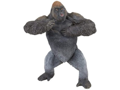 Nagy hegyi gorilla, aki a mellkasát kopogtatja! A Papo hegyi gorilla 50243 egy óriás emberszabású majom, ami az esőerdőkben él. A gorilla az egyik legnagyobb szárazföldi emlősállat, a figura műanyagból készült, és a felülete kézzel festett. A gorilla együtt használható más Papo állatfigurákkal, játékkészletekkel is. A Papo hegyi gorilla 50243 méretei: 10 x 5 x 12 cm.
