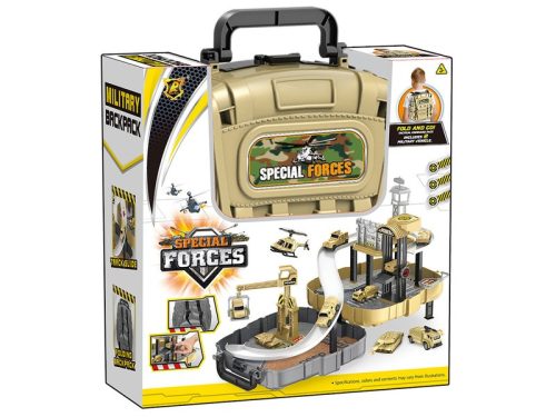Parkolóház katonai járművekkel táskában Rendezz be egy katonai bázist rengeteg harci járgánnyal! A Parkolóház katonai járművekkel táskában egy műanyagból készült emeletes garázs, ahol katonai autókat, helikoptereket tudsz tárolni. A pálya lifttel, daruval és egy rámpával is fel van szerelve, a csomagban két járművet is megtalálsz, amikkel akár egy kisebb ütközetet is el tudsz játszani. Ha összecsukod a készletet, egy praktikus hátizsákot kapsz, amit magaddal tudsz vinni! A Parkolóház katonai járművekkel táskában csomagolási méretei: 28 x 10 x 30 cm. Tovább olvasom Bezár