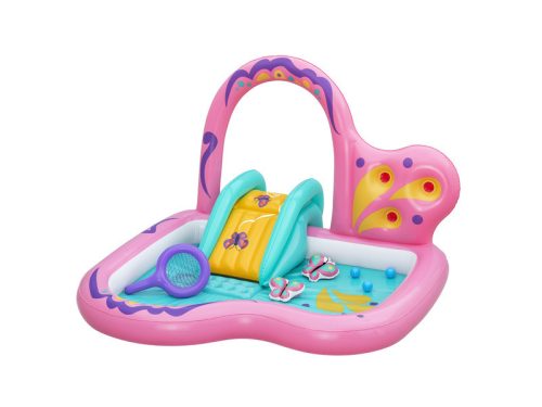 Ha olyan vizes játékot keresel, ami látványos és tényleg leköti a gyerekeket, a Bestway Pillangós játékcenter nagyon jó választás. A pillangós szivárványos hangulatot a permetezős ív hozza, ami gyorsan csatlakoztatható a kerti tömlőre, így folyamatosan frissít a melegben. A játékközpontban van csúszda, ami a medence aljához rögzített, és a végén puha érkezőpárna segít a kényelmes leérkezésben. Emellett külön móka a labdasortírozó fal (3 labdával), és az inflálható pillangóháló is, amivel a mellékelt pillangó figurákat lehet “elkapni”. A nap végén a leeresztő szelep megkönnyíti azt. Méret: 180 x 180 x 117 cm Tartozékok: medence, felfújható háló, 2 pillangó, 3 labda, javítófolt Tovább olvasom Bezár