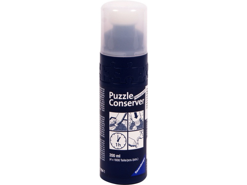 Ravensburger: Puzzle 200 ml - Puzzle ragasztó A Raversburger puzzle ragasztó (17954) az elkészült kirakók rögzítésére szolgál. Ezt a speciális, folyékony ragasztót a közvetlenül a puzzle képes felén kell egyenletesen eloszlatni a szivacs segítségével. Egy óra száradás után fátyolmentes bevonatot képez, mely megvédi a puzzle gyönyörű, élénk színeit. Felhasználható a Starline, Relife, Silhouette és minden standard Ravensburger puzzle-hoz. A flakon tartalma 8 doboz 500 db-os vagy 4 doboz 1000 darabos puzzle rögzítéséhez elegendő.