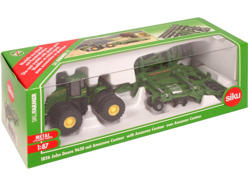 Sötétzöld, dupla kerekű John Deere 9630 traktor Amazone Centaur rotációs kapa utánfutóval. A Siku: John Deere 9630 traktor Amazone Centaur utánfutóval készlet traktora az erős mezőgazdasági gép 1:87 méretarányú kicsinyített mása. A traktor dupla kerekekkel van felszerelve, hogy könnyen tudjon haladni a tarlón. A csomag tartalmaz egy fém és műanyag Amazone Centaur utánfutót is, rotációs kapával felszerelve. Az utánfutó összecsukható, hogy könnyebben szállítható legyen, az alkatrészei forognak. Traktor és utánfutó mérete: 20 x 8 x 4 cm. Tovább olvasom Bezár