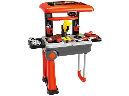 Nyisd meg saját barkácsműhelyed ezzel a 2 az 1-ben készlet segítségével! A Szerszámkészlet gurulós bőröndben nem csak praktikus a könnyű hordozhatóságával, de át is alakíthatod kézműves állomássá. Nyisd hát ki a bőröndöt, szereld össze a munkaasztalt, és már neki is kezdhetsz a fűrészelésnek, fúrásnak és faragásnak! A szettben minden szükséges munkagépet megtalálsz. A Szerszámkészlet gurulós bőrönd méretei: 23 x 33 x 14 cm, asztallá alakítás után: 63 x 53 x 24 cm. A játékot 3 éves kortól ajánljuk.