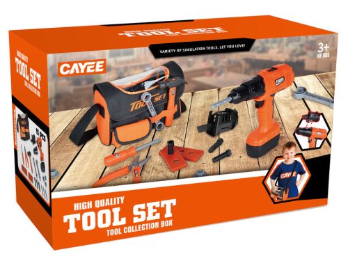 Szerszámkészlet kistáskában, elemes fúróval A legtöbb kisgyereket teljesen magával ragadja a barkácsolás. Most itt a lehetőség, hogy a gyerekek maguk is a barkácsolás varázslatos világának aktív szereplői legyenek, ezzel a menő szerszámkészlettel! Ebben a barkácskészletben ott van minden, amire csak szükség lehet, ha valamit meg kell javítani vagy össze kell szerelni: 1 csavarhúzó, 1 kalapács, 2 csavarkulcs, 1 fogó, és a legfontosabb, 1 elemes játék fúrógép. Ehhez jönnek még kiegészítők, különböző fúróhegyek, csavarok, stb és hogy a rendszerezéssel és a szállítással se legyen gond, egy vagány táska, amibe minden elfér. Minden olyan, mint az apáé vagy a szerelő bácsié, csak épp biztonságos és csak a gyerekeké. Ideális ajándék a szerelés iránt érdeklődő fiúknak és lányoknak is. A szerelés remek lehetőség az elmélyült figyelem, koncentráció gyakorlására, hozzájárul a finommotorika fejlesztéséhez, és persze szuper lehetőség a szerepjátékra is.