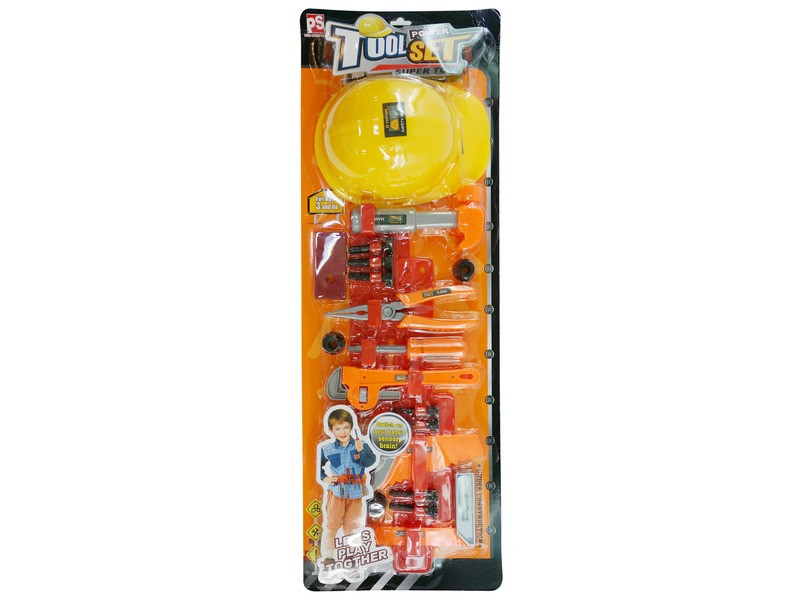 Barkácsolj és csavarozz a narancssárga szerszámkészlettel! A Szerszámok lapon 20 darabos készlet narancssárga és szürke alapszínű fűrészt, franciakulcsot, csavarhúzót, lapos fogót, kalapácsot, tolómérőt, valamint csavarokat lapokat és egy sárga munkavédelmi sisakot is tartalmaz. A szerszámok műanyagból készültek, megtanulhatod hogyan kell használni őket, miközben a műszaki érzéked, és a kézügyességes is fejlődik. A Szerszámok lapon 20 darabos készlet csomagolási méretei: 26 x 8 x 76 cm. Tovább olvasom Bezár