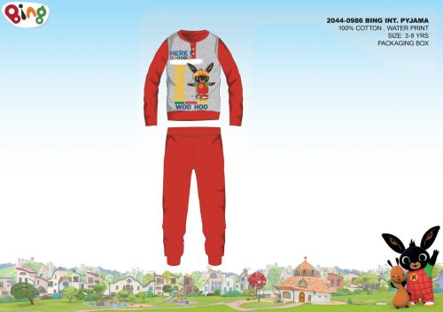 Téli pamut interlock gyerek pizsama - Bing nyuszi - piros - 116