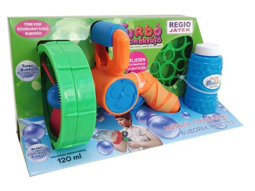 Turbó buborékfújó Többféle színben. Kérjük hogy a megjegyzésbe tüntesd fel, hogy melyik színt kéred. Árassz el mindent kicsi, vagy nagy buborékokkal! A Turbó buborékfújó egy motoros, műanyagból készült szerkezet, amivel hosszú, folyamatos buborék készítést tudsz elérni. Először is töltsd a tálkába a szappanbuborék fújó folyadékot, mártsd bele a turbó fejet! Ha megnyomod a gombot, a buborékok életre kelnek, a szivárvány minden színében. A két különböző adagoló fejjel többféle méretű buborékot fújhatsz az adagoló fejet könnyen lehet cserélni. A Turbó buborékfújó készlet 120 ml buborék folyadékot tartalmaz, a játék bármilyen szappanbuborék utántöltővel együtt használható. A játék 2 darab AA ceruzaelemmel működik, a csomagolás az elemeket nem tartalmazza. A Turbó buborékfújó méretei: 18 x 12 x 15 cm. Tovább olvasom Bezár